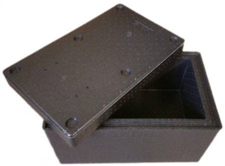 Um den direkten Kontakt zwischen Trockeneis und dem Kühlgut in der Box zu vermeiden bieten wir auch extra stabile 30 l Boxen mit separatem Trockeneisfach im Deckel zum Aufschieben für Platten oder Pellets.